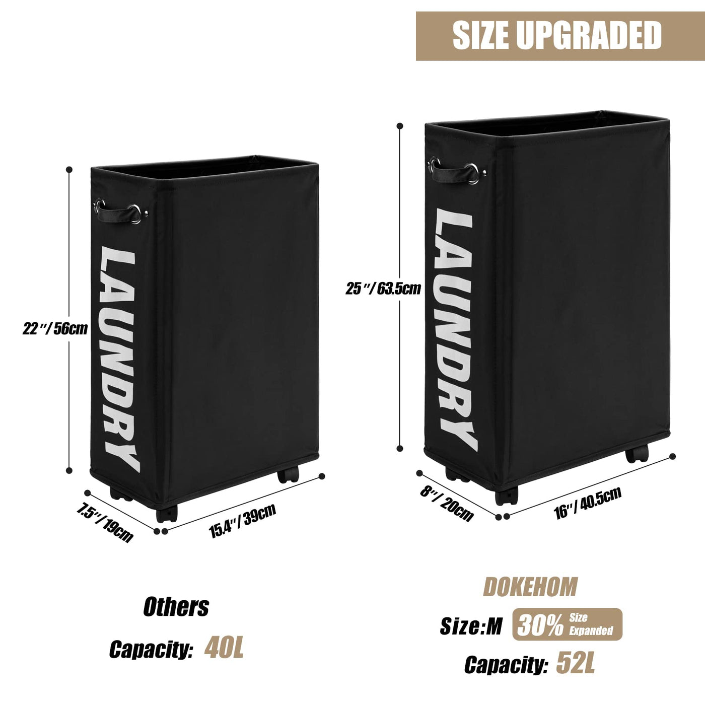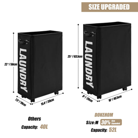 - SLIM SIZE - 16"(L) x 8"(W) x 25"(H) / 40.5 x 20 x 63.5CM with 52L capacity is fit into norrow space, you can folded it and put into drawer or under bed when you don't use it