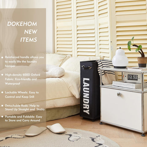 - 4 WHEELS - The laundry hamper on wheels is easy to move, brake on one of the wheels ensure safety for home use