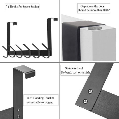 - ✔UNIVERSAL FIT - Fits standard doors from 1.37" to 1.77" (3.5cm to 4.5cm). Last but not least, it's good for closing the door with this rack, please make sure there is enough gap over your door: above 0.06" (a coin thick).To fit at different door thick, we attached 4 sponge pads for adjustment.