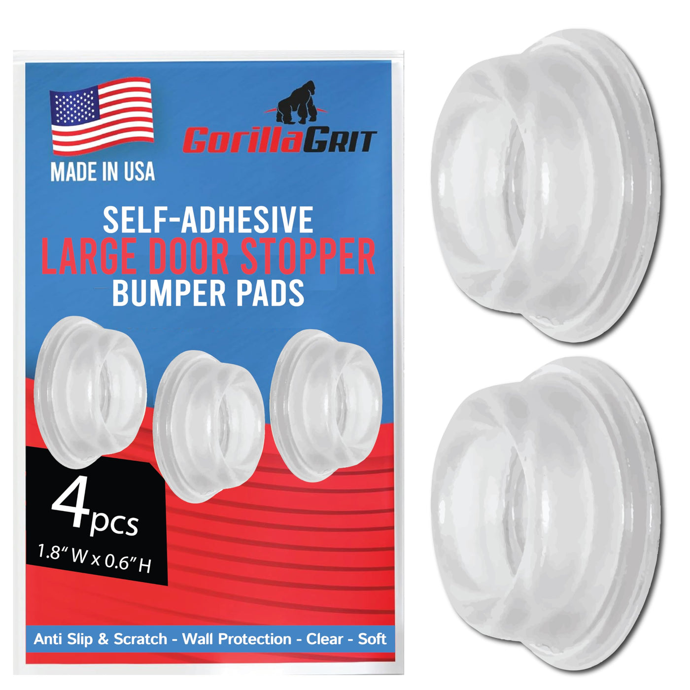 - Set of 4 Large Self-adhesive Rubber Door Bumpers; Color: Clear or Transparent. Paintable if needed