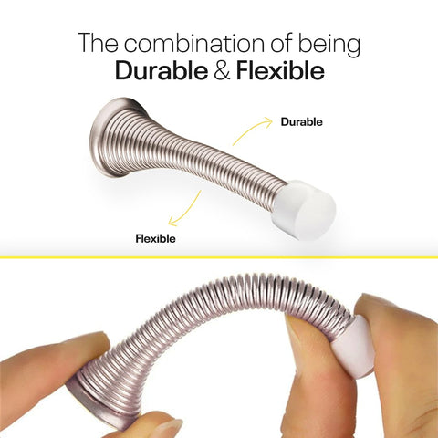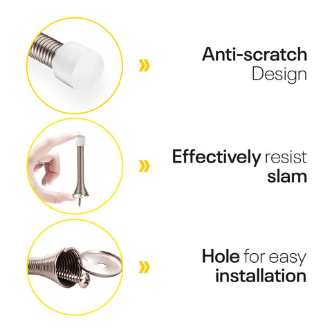 - Premium Built Doorstops for Inside Door: This durable door stopper pack is just a click away. The 3.2 inch spring door stop, made of high quality alloy steel, includes a rubber tip for soft cushioning, making door stoper perfect for home improvement