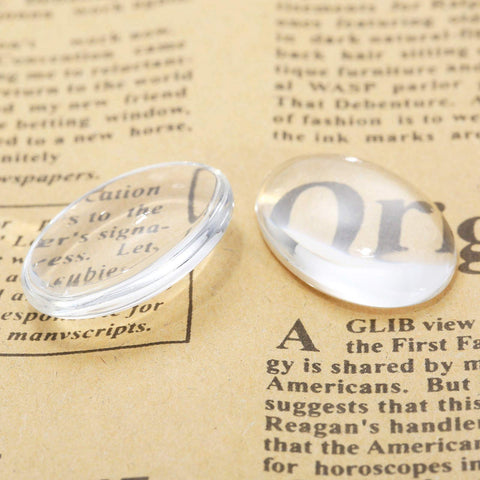 Glass cabochon with non-calibrated round and flat-back design has a magnifying effect when placed on top of images or words.