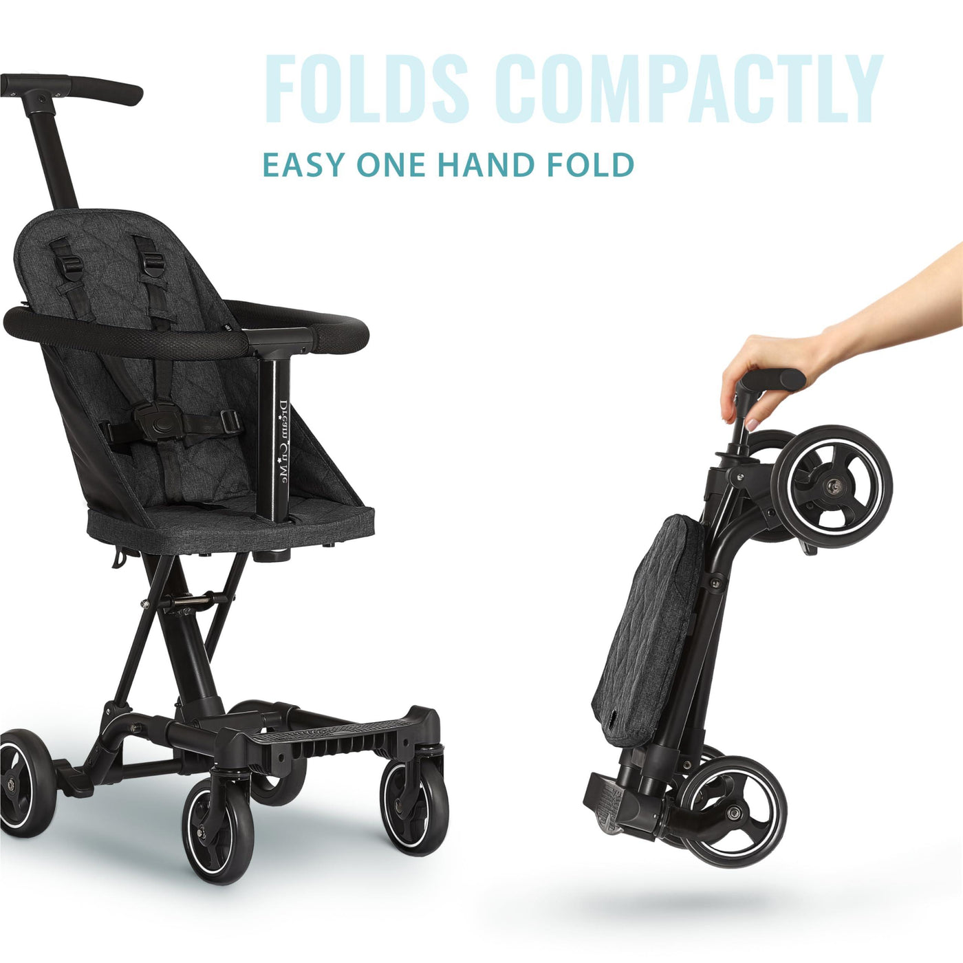 Details: Imagine all of the perks that come with having a traditional stroller without the added bulk?! Experience the world with the JPMA Innovation Award Winner & theme-park approved, Dream On Me Coast Rider Stroller! Fondly known as the Disney (Park) stroller, this must-have checks all the boxes for baby AND parent. Lightweight at just 13.5 Lbs. yet equipped with a sturdy aluminium frame, the Coast Rider Stroller easily converts to a Scooter & Rider. The Soft-ride wheels for maneuverability, plush seating and 275-degree viewing put your child’s comfort at the forefront. This parent-loved Stroller boasts of a smooth one-hand fold feature that allows it to instantly fold inward like a book, high-quality waterproof fabric, adjustable handles & push bars. For days out in the sun or that family shopping run, combine the stroller with the Coast Rider Stroller Canopy and Coast Rider Connector (both sold separately) that turns it into a tandem travel-ready stroller in a snap! With family fun-time on the agenda, safety is our top priority. The Coast Rider Stroller comes with a 5-point safety harness and meets/exceeds all ASTM & CPSC Standards. It’s also the winner of the National Parenting Center Holiday 2019 Seal of Approval. Weight capacity: 45 Lbs. Dimensions: 28” L x 14” W x 37.5” H. Keep safety harness strapped on child at all times, do not hang diaper bags/purses on the handle bars.
