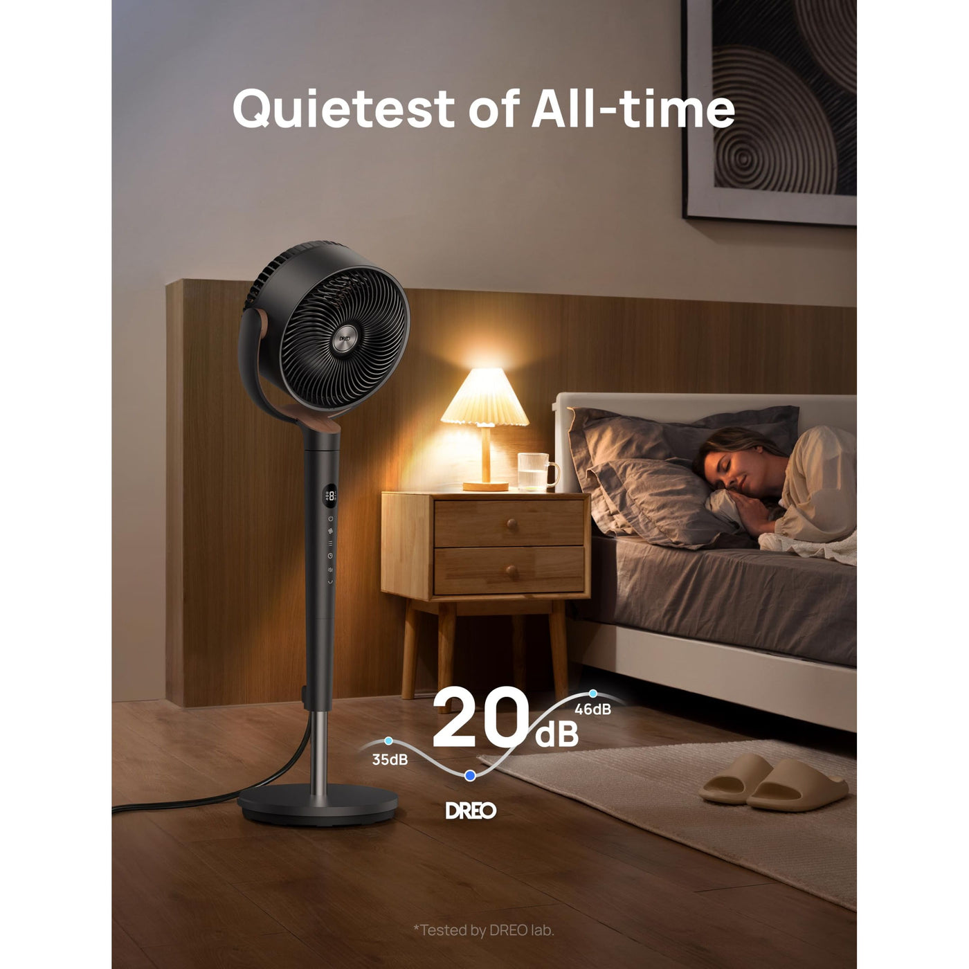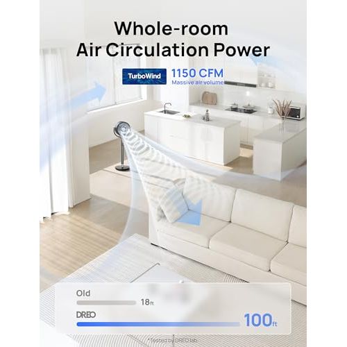 - πΌππππ πΈππππ π«πͺ π΄ππππ: Don't sacrifice performance for quietness, it reduces noise down to 20dB, making it the ideal quiet fan for bedtime or working without distractions. Thanks to the DREO brushless DC motor combined with turbine style blade technology, it circulates the air quickly throughout the room. And the DC motor produces 30% more air using 40% less energy.
