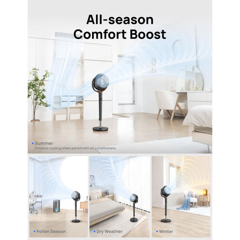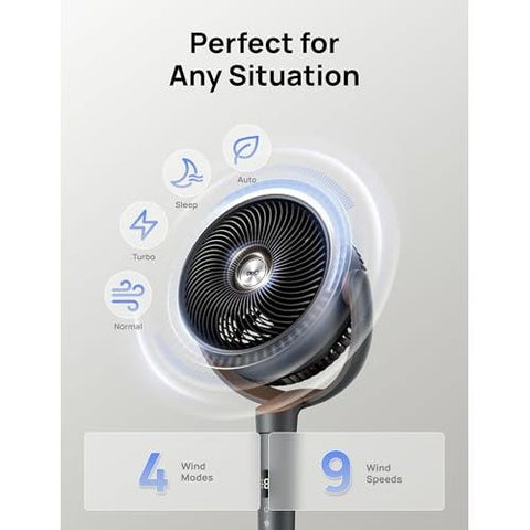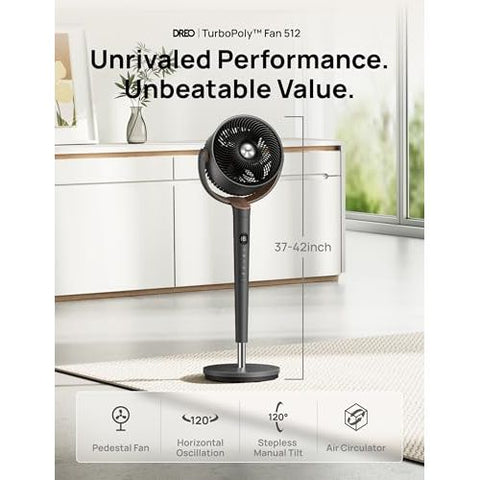 - πΆππ πππ, π΄πππππππ πππππππππ: From circulating air around, to quiet powerful cooling, Dreo TurboPoly Fan for bedroom combines a pedestal fan, an oscillating fan, and an air circulator into one, which adapts greatly to all your needs. Don't get confused by its shape, the 9 wind speeds and 4 modes of the Dreo standing fan do much more than a fan.