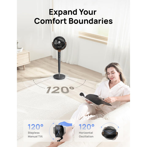 π πΆππππππππππ: Experiment with 120Β° stepless vertical tilt and 120Λ horizontal oscillation to cover every corner of the room. Vertical tilt requires manual operation and horizontal oscillation can be controlled by remote and panel. Even if this room fan is used in the bedroom, it will not affect the air blowing to the bed. The large LED display and remote control make it intuitive and convenient to control the oscillation angles and modes even from far away.