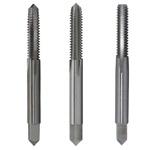 Details: Drill America DWT Series High Speed Steel hand taps are the most versatile taps for hand use, or for tapping under power. Hand taps are popular for use in general machine tapping or CNC tapping. For re-threading and making new threads. High Speed Steel Hand Taps come in three styles: Taper Style: Starts the thread square with the workpiece. Plug Style: Generally used in thru holes. Bottom Style: Generate the thread to the bottom of the hole. A tap set contains 1 taper, 1 plug and 1 bottoming tap.