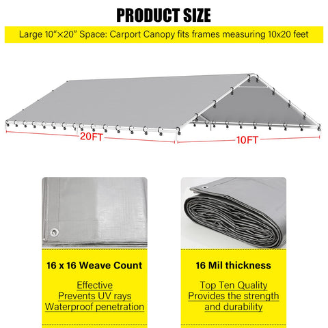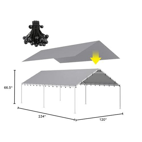 - 【10x20 canopy】-The car canopy cover (not include frame and poles) fits for most frame in size 10' x 20' on market. , Perfect for Residential and Commercial use,Please check your carport's size before purchase.