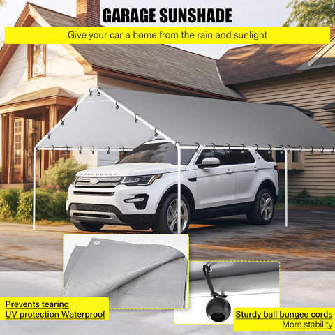 - 【High Quality car canopy】- This carport canopy replacement cover is made of waterproof UV woven polyethylene, Top-quality top tent is 16 mil thickness and 16 x 16 weave count, which gives the strength and durability, which is tear-proof, anti-UV and waterproof, fade resistant , Also features sturdy grommet holes and edges designed to be used for rainwater drainage, Protects your car and boat from rain, wind and snow.