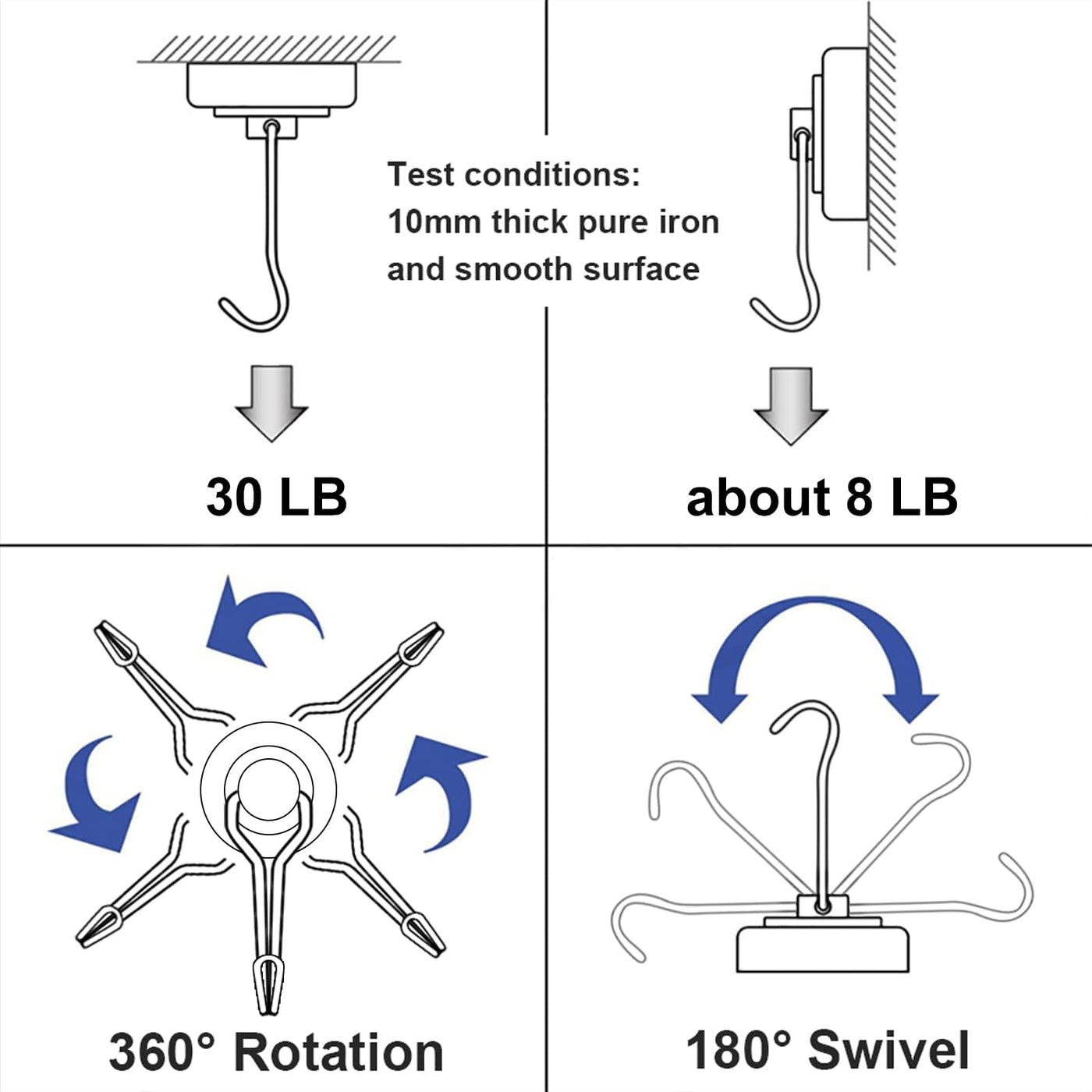 - 【Wide Application】High grade neodymium magnetic hooks for organization, mounting, decorating and storage. Our Powerful magnetic hooks are perfect for home , kitchen , office, garage, cabinets, grill, refrigerator, Cruise and more!