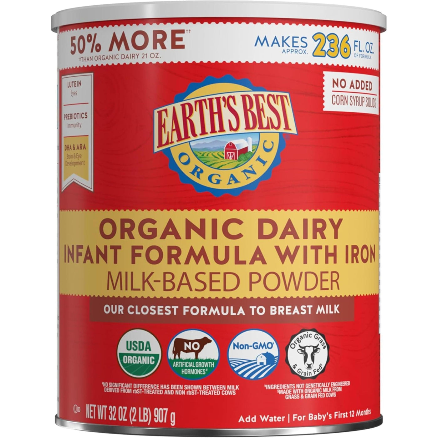 - 32 OZ FORMULA CONTAINER: Includes one 32 oz container of Earth's Best Organic Dairy Infant Formula