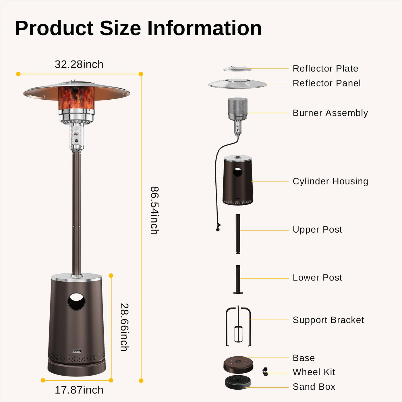 EAST OAK 50,000 BTU Patio Heater with Sand Box, Table Design, Double-Layer Stainless Steel Burner, Wheels, Triple Protection System, Outdoor Heater for Home and Residential, Pinecone