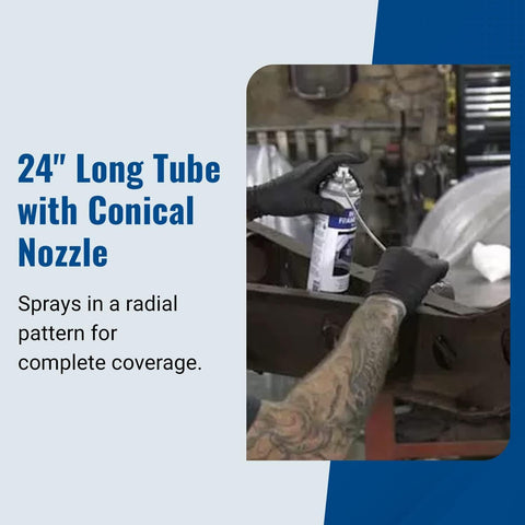 - HOW TO USE: Shake the can vigorously for at least 1 minute before and occasionally during use. Insert extension tube into spray nozzle then insert extension nozzle into frame openings, bolt holes, etc.Depress spray button and apply coating while pulling the extension nozzle back from the opening. Continue in all areas you can for complete coverage.