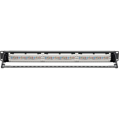 This patch panel enables quick, easy cable patching. Just plug Cat6 cables into its 24 front RJ45 ports, and use a 110 or Krone punch-down tool (do not use a 4/5 pair 110 punch-down tool) to terminate color-coded connections in the rear. Both the front and rear connectors are clearly numbered, and the front ports have blank labels to help you identify individual cable runs. The N252-P24 supports EIA/TIA 568A and 568B wiring standards and is compatible with all network applications.