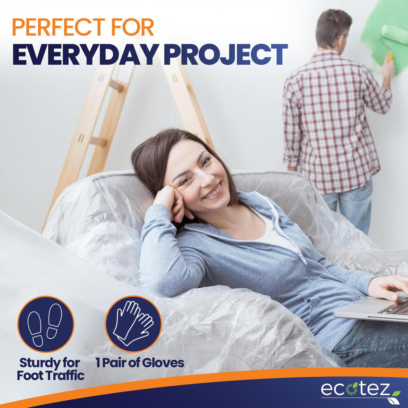- DURABILITY AND TIGHLY SECURE: Ecotez plastic furniture covers for storage and floor covering for protection provide a secure fit over your valuables, ensuring a clean finish and reliable protection while being more manageable than a typical white drop cloth