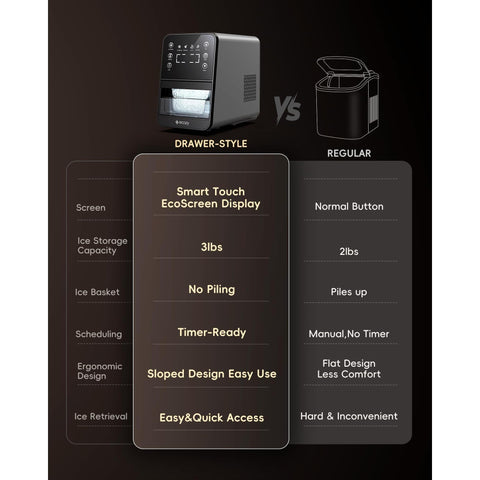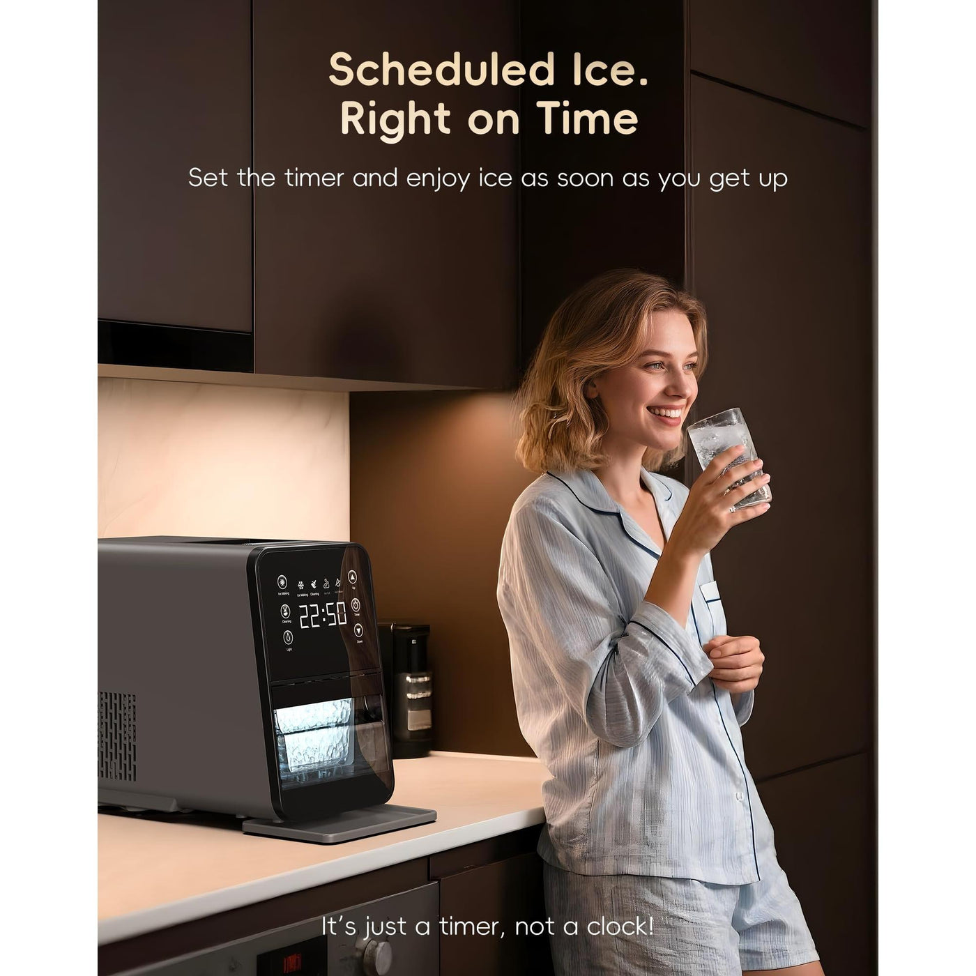 ecozy Nugget Ice Maker Countertop, Intuitive EcoScreen, 33lbs/24H Chewable Pebble Ice, 3lb Pull-Out Basket, Self-Cleaning, One-Touch Timer – Perfect for Home, Drinks & Cocktails