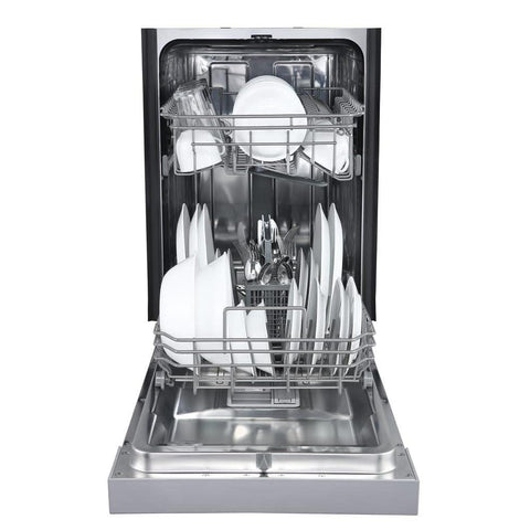 - Accommodates up to eight (8) place settings and features a silverware basket and cup tray