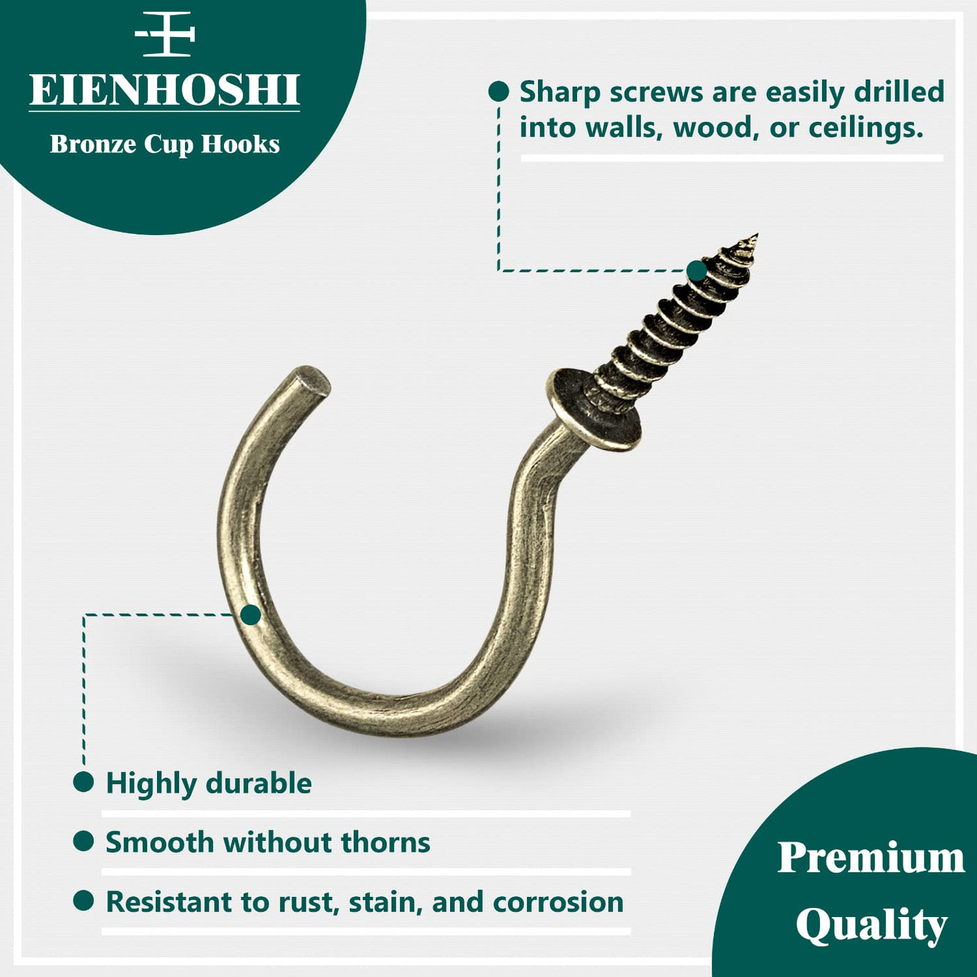 - 【Premium Quality】Our cup hooks are made of high-quality steel and the surface is bronze plated and smooth without thorns. It helps prevent rust and will not scratch your hands or hanging objects
