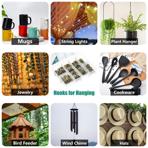 - 【Widely Use】Suitable for indoor and outdoor use. Cup hooks screw in help create extra space for the kitchen, garage, garden, storage room, school, office and any place you need, they are perfect for hanging coffee mugs, tea cups, jewelry, plants, keys, pots, lights, curtains, bird feeders, etc
