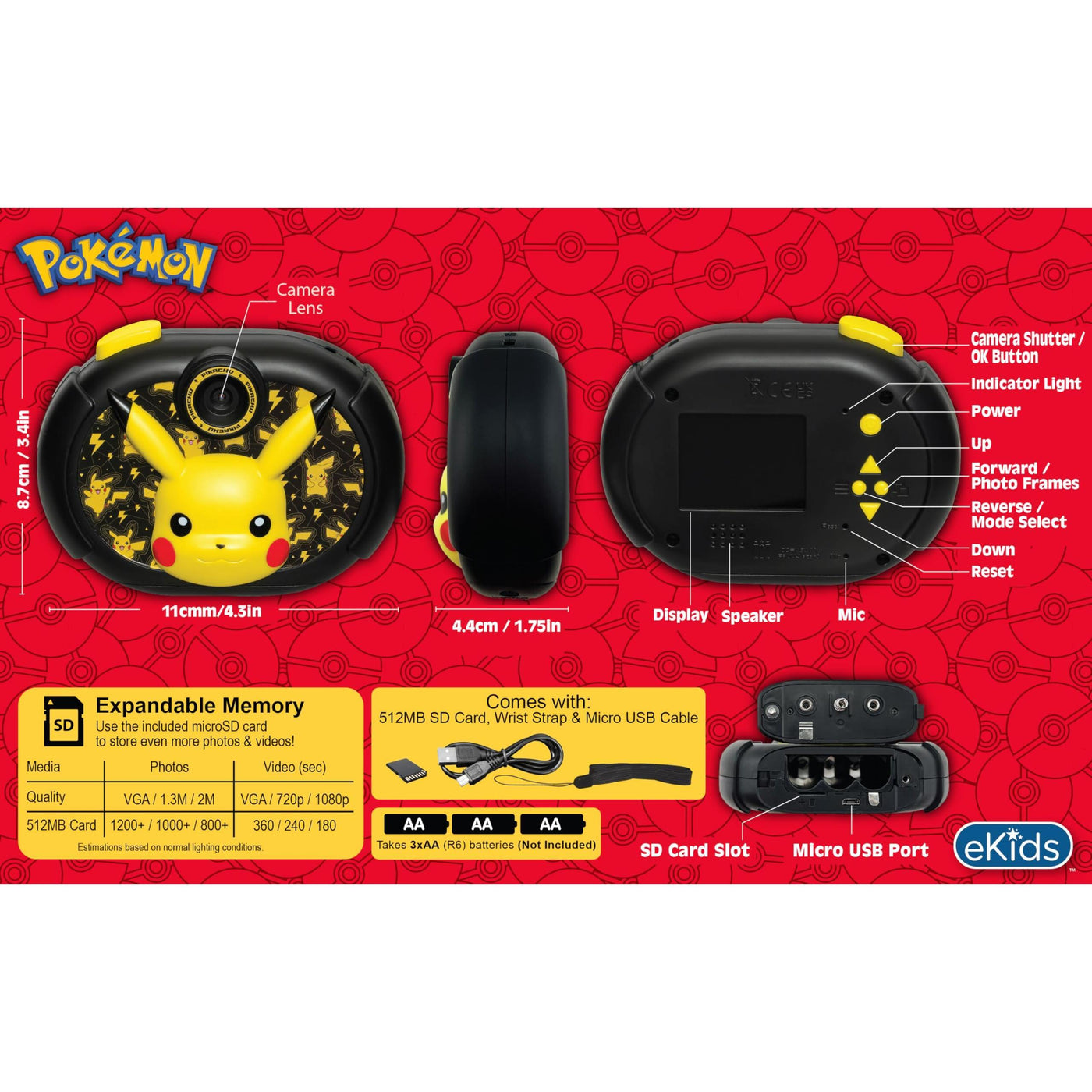 - Perfect Gift: Kids cameras make great gifts for any occasion. Requires 3 AA batteries. Includes wrist strap, SD card, and micro USB cable. Visit the ekids brand store to explore even more cool toys for kids!