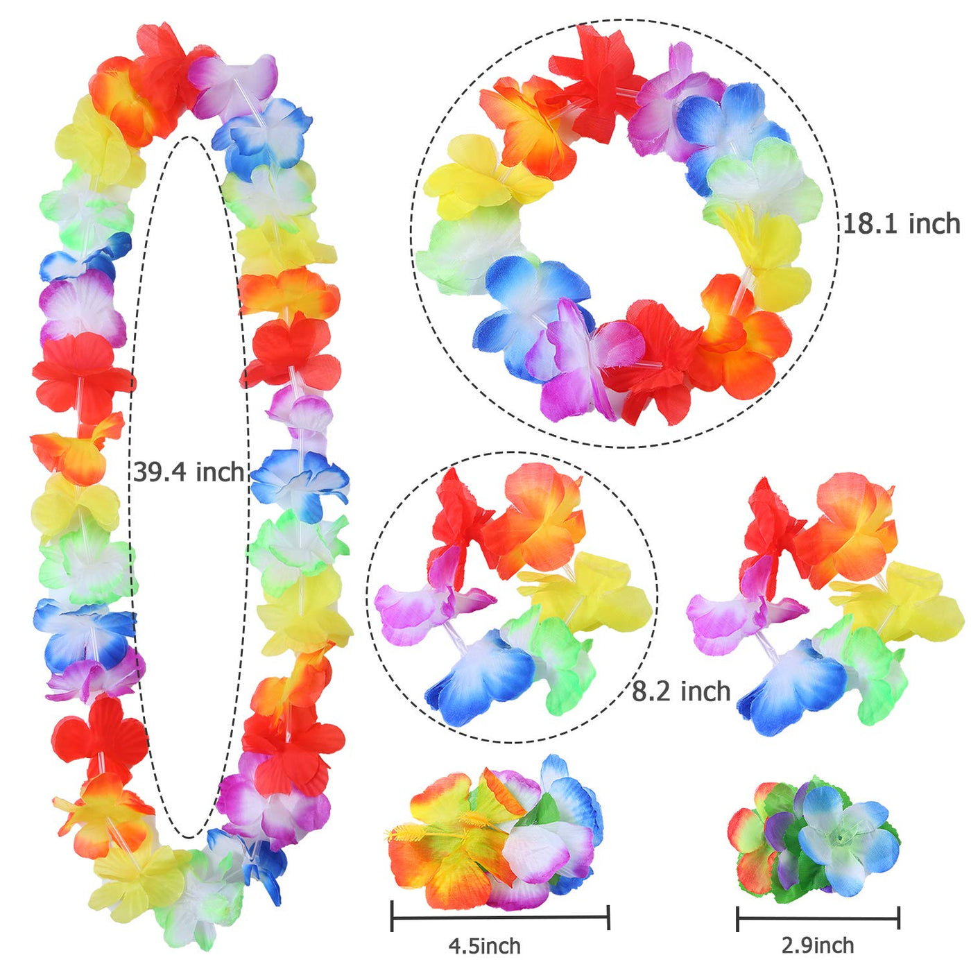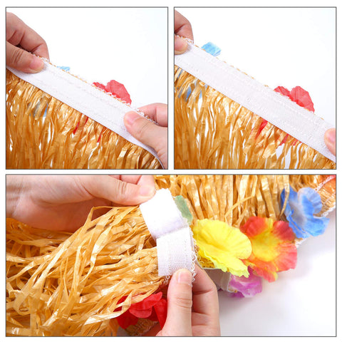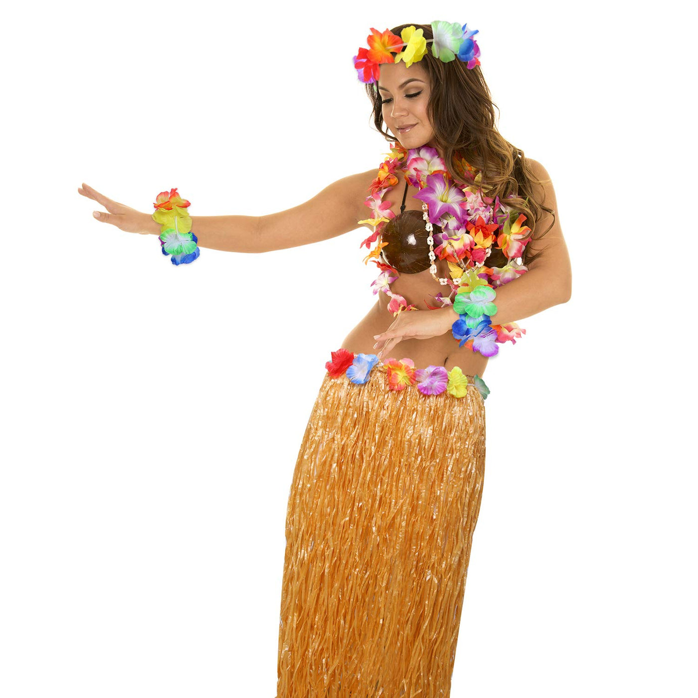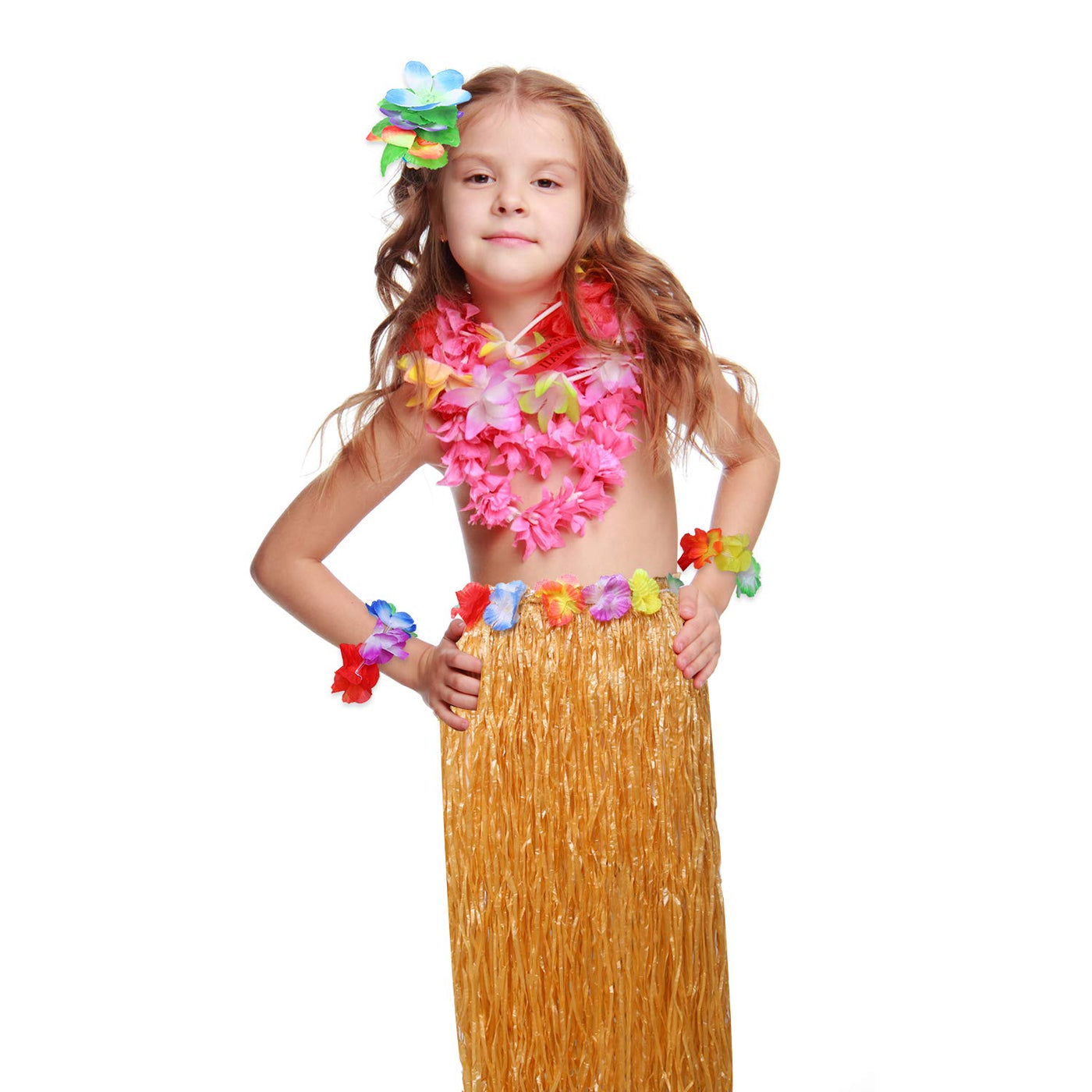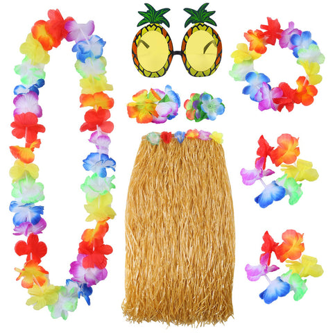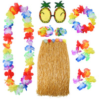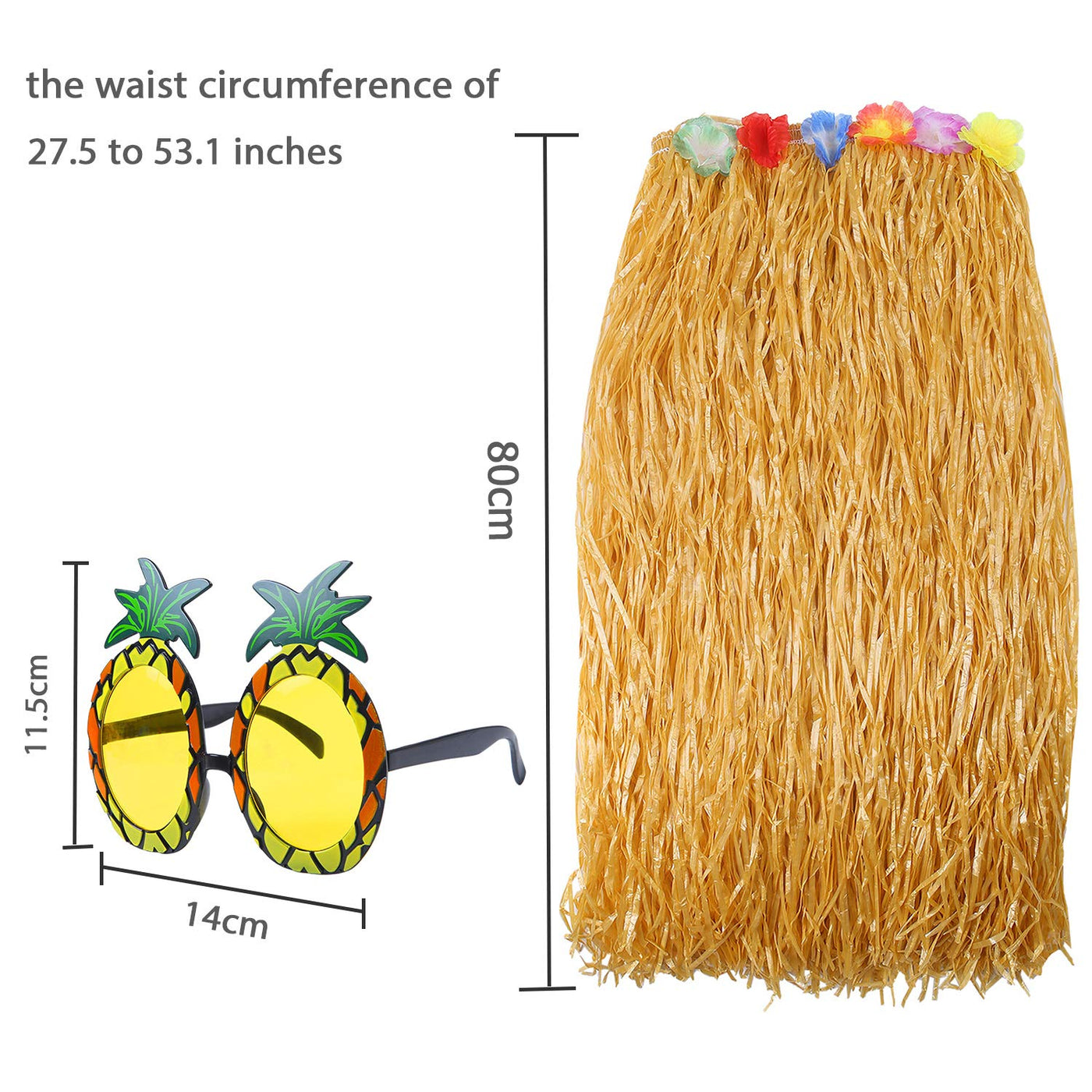 Elcoho 8 Pieces Hawaiian Hula Grass Skirt Sunglasses Leis Necklace Bracelet Set Sale