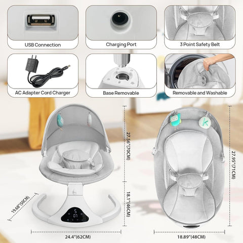 - Technology&Music:The baby swing is equipped with Bluetooth connectivity, allowing parents to easily play your little one's favorite tunes while they swing without disturbing their baby.