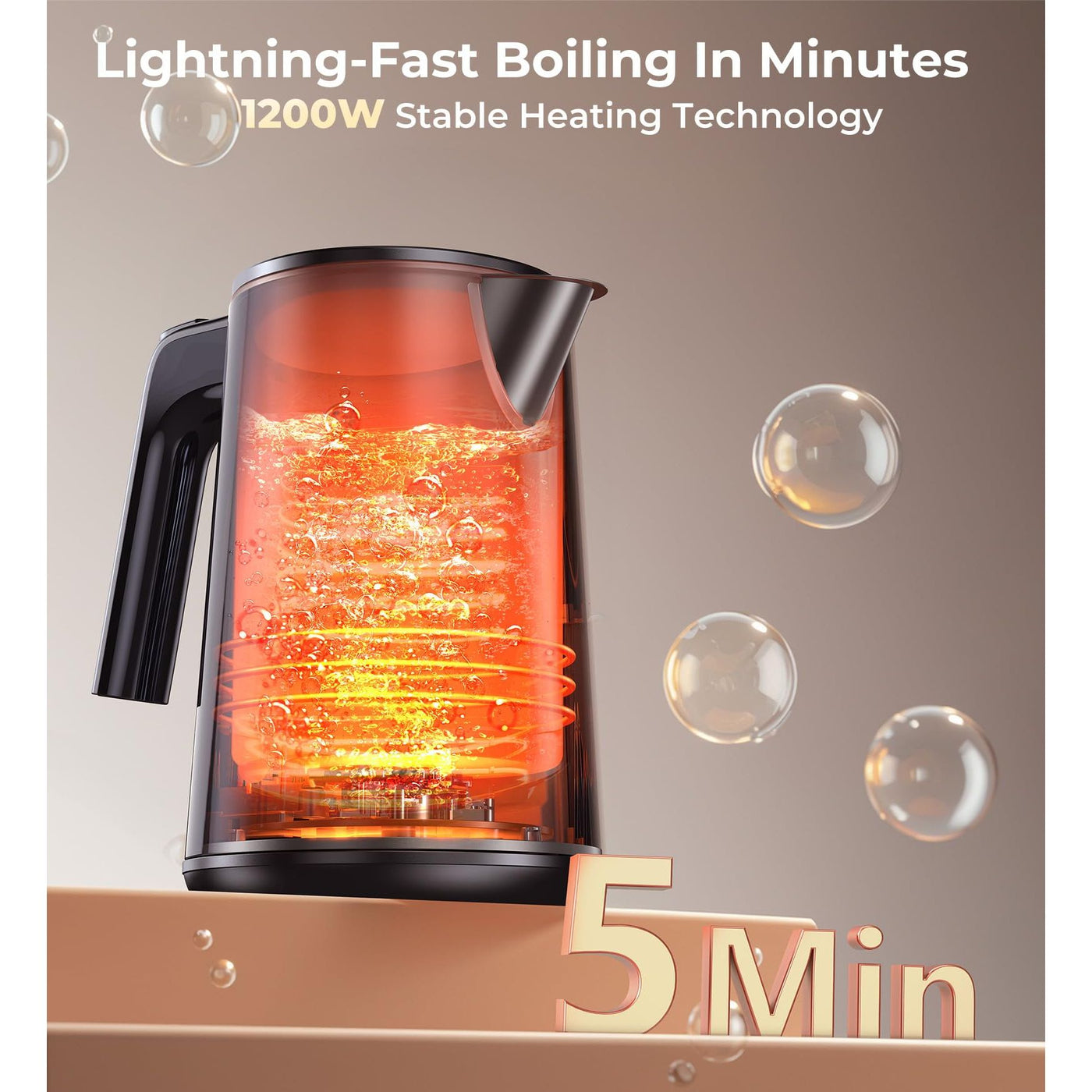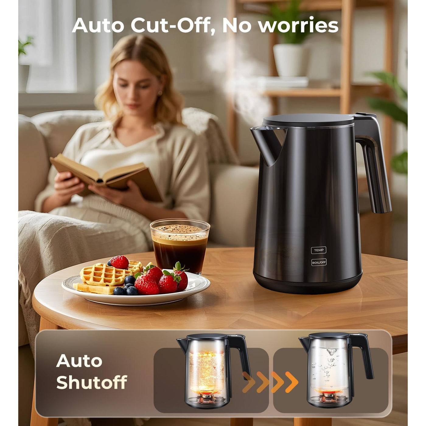 - 【Smart Efficient Electric Kettle】Designed for speed and convenience, this electric tea kettle boils water in minutes. Its automatic shutoff activates when water reaches the desired temperature or when the kettle is empty, saving energy and preventing overheating