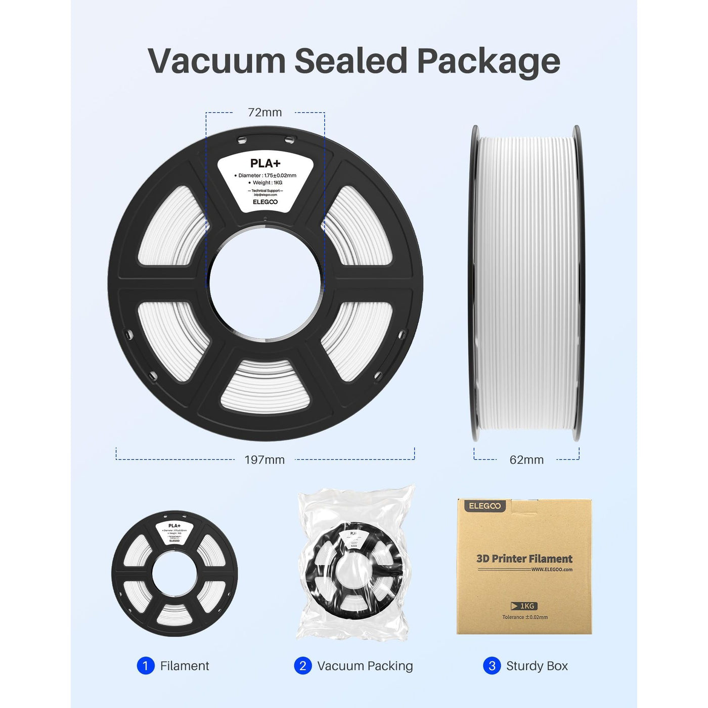 - NO CLOGGING & NO BUBBLE: ELEGOO PLA Plus Filament is completely dried before packaging and vacuum sealed well to protect the filament from moisture, no clogging and bubbling problems