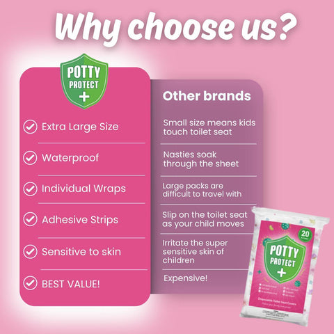 - CHILDREN LOVE THEM! – These toilet covers come in a choice of two gorgeous designs that your children will love, suitable for both boys and girls. Choose between our boho or floral patterns. Also, our potty covers come in a jumbo pack of 20 sheets, so no need to worry about running out any time soon.