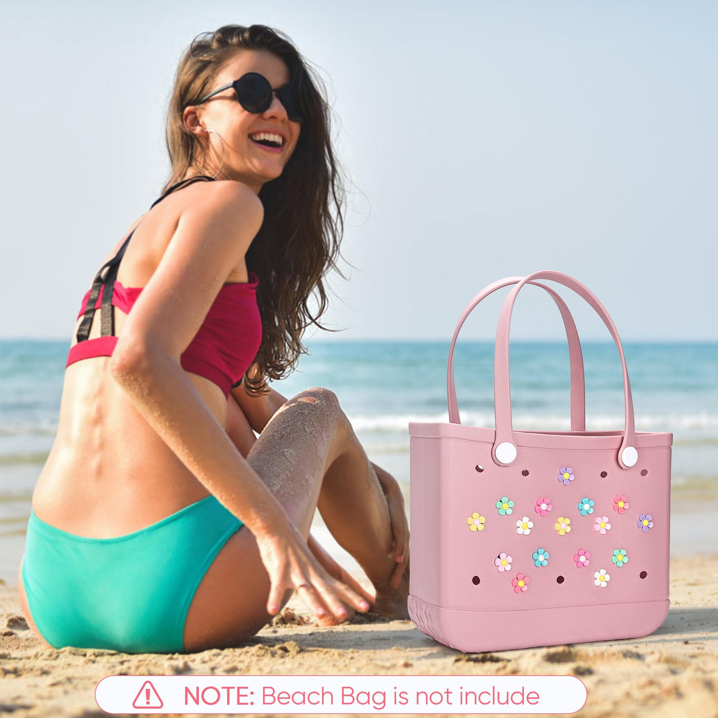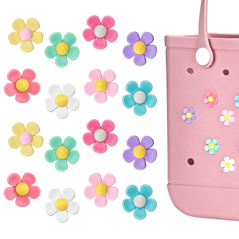 - Brighten Up Your Beach Tote: Add a cheerful burst of color to your Bogg Bag or any other rubber beach tote with this 16-pack of vibrant flower charms. Perfect for showcasing your unique style and embracing a playful, beachy vibe