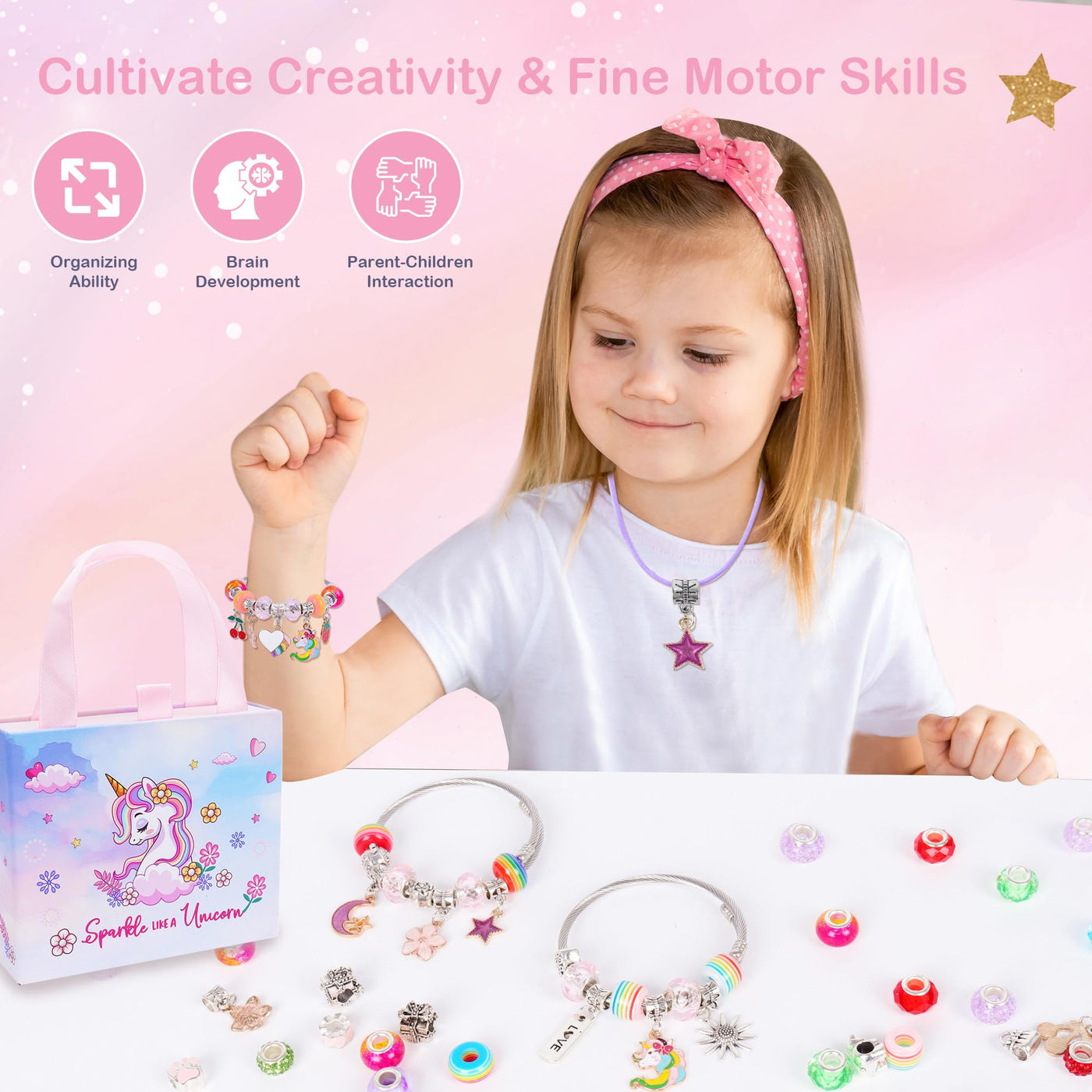 ELLENER Gifts for Girls Age 6-8 8-10,Bracelet Making Kit,Girls Toys,Gift Basket That Inspires Creativity and Individuality and is Fun to Play with Friends Create a Unique Gift for Your Friend