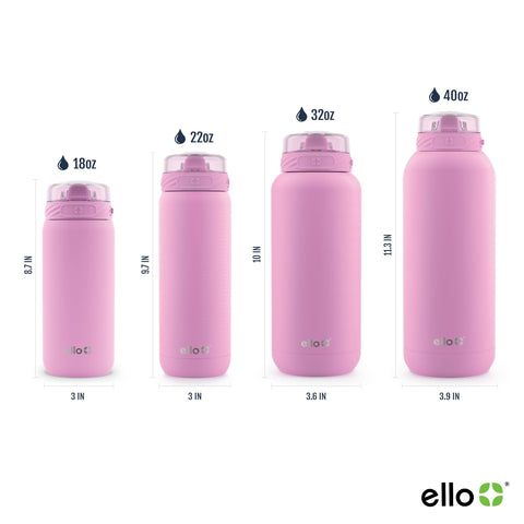 Details: Elevate your hydration experience with the Ello Cooper Vacuum Insulated Stainless Steel Water Bottle. Available in 18oz, 22oz, 32oz, and 40oz sizes, it’s a perfect fit for every age. Plus, the 18oz and 22oz sizes are car cup compatible. Featuring a soft silicone spout and a secure, locking dome lid, Cooper ensures your drink surface stays fully covered during transport. The BPA-free internal plastic straw provides safe and easy sipping. Constructed from premium 18/8 stainless steel with an ultra-durable powder coat finish, this bottle resists chipping and rust for lasting durability. Enjoy refreshingly cold drinks for over 24 hours. All parts are top-rack dishwasher safe, but handwashing is recommended for longevity. The spout can be fully disassembled for thorough cleaning, reaching all nooks and crannies with ease. Express your style with our selection of vibrant colors, allowing Cooper to complement your lifestyle and personal fashion statement.