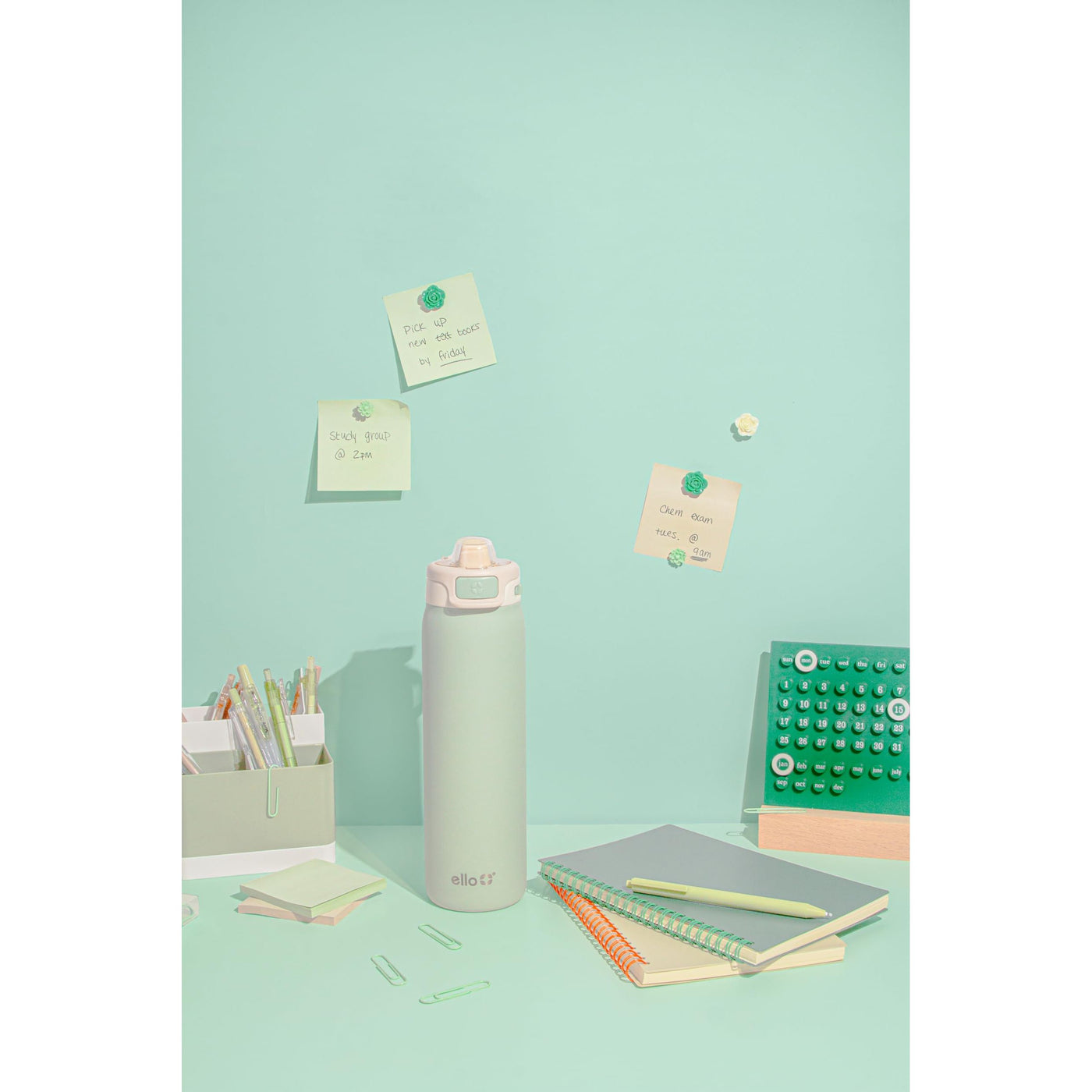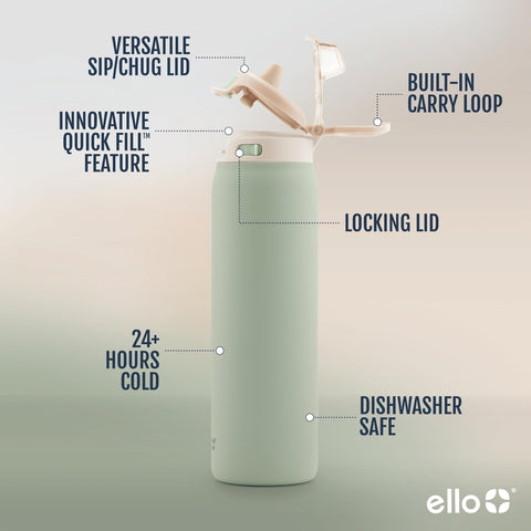 Ello Pop & Fill 22oz Stainless Steel Water Bottle with Quick Fill Technology, Double Walled and Vacuum Insulated Metal, Leak Proof Locking Lid, Sip and Chug, Reusable, BPA Free, Pistachio