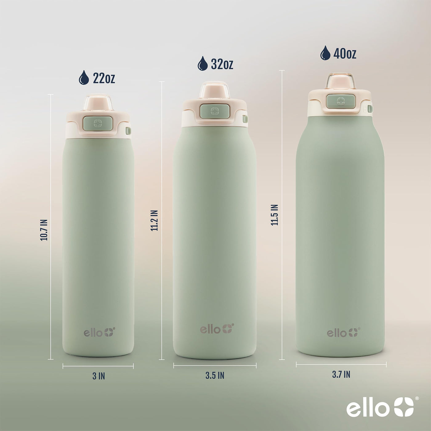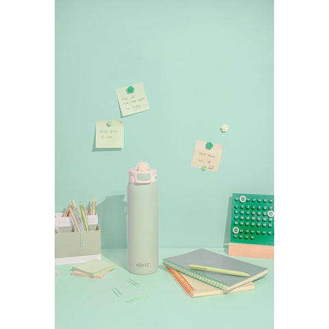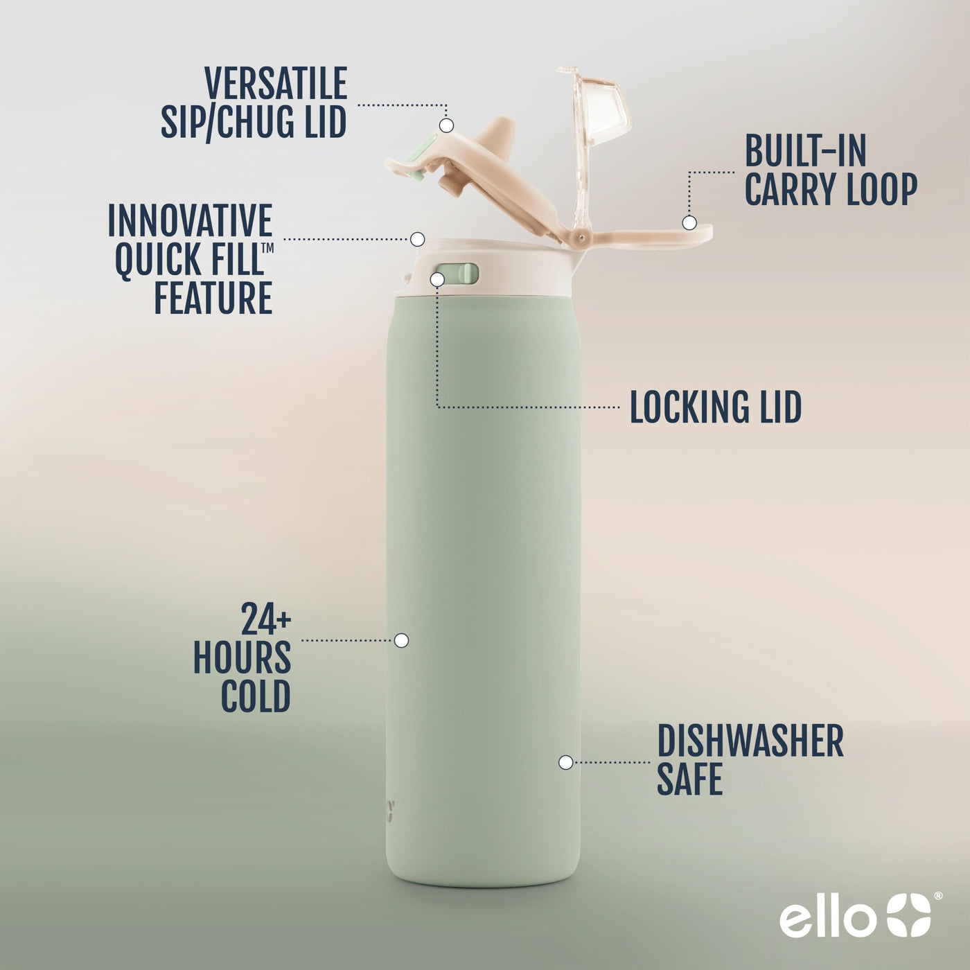 Ello Pop & Fill 22oz Stainless Steel Water Bottle with Quick Fill Technology, Double Walled and Vacuum Insulated Metal, Leak Proof Locking Lid, Sip and Chug, Reusable, BPA Free, Pistachio Sale