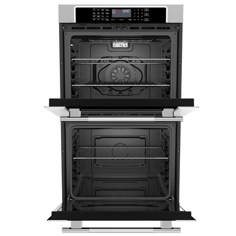 - [PRECISE TEMP CONTROL] The sensor probe in the upper oven precisely monitors the internal temperature, offering exclusive temperature for every kind of food, the maximum temperature can be up to 500℉. The electric wall oven meets a variety of requirements with Sabbath, Bake, Broil, Conv. Broil, Conv. Bake, Conv. Roast, Warm/Proof, Delay Start, Self/Steam Clean, Air fry