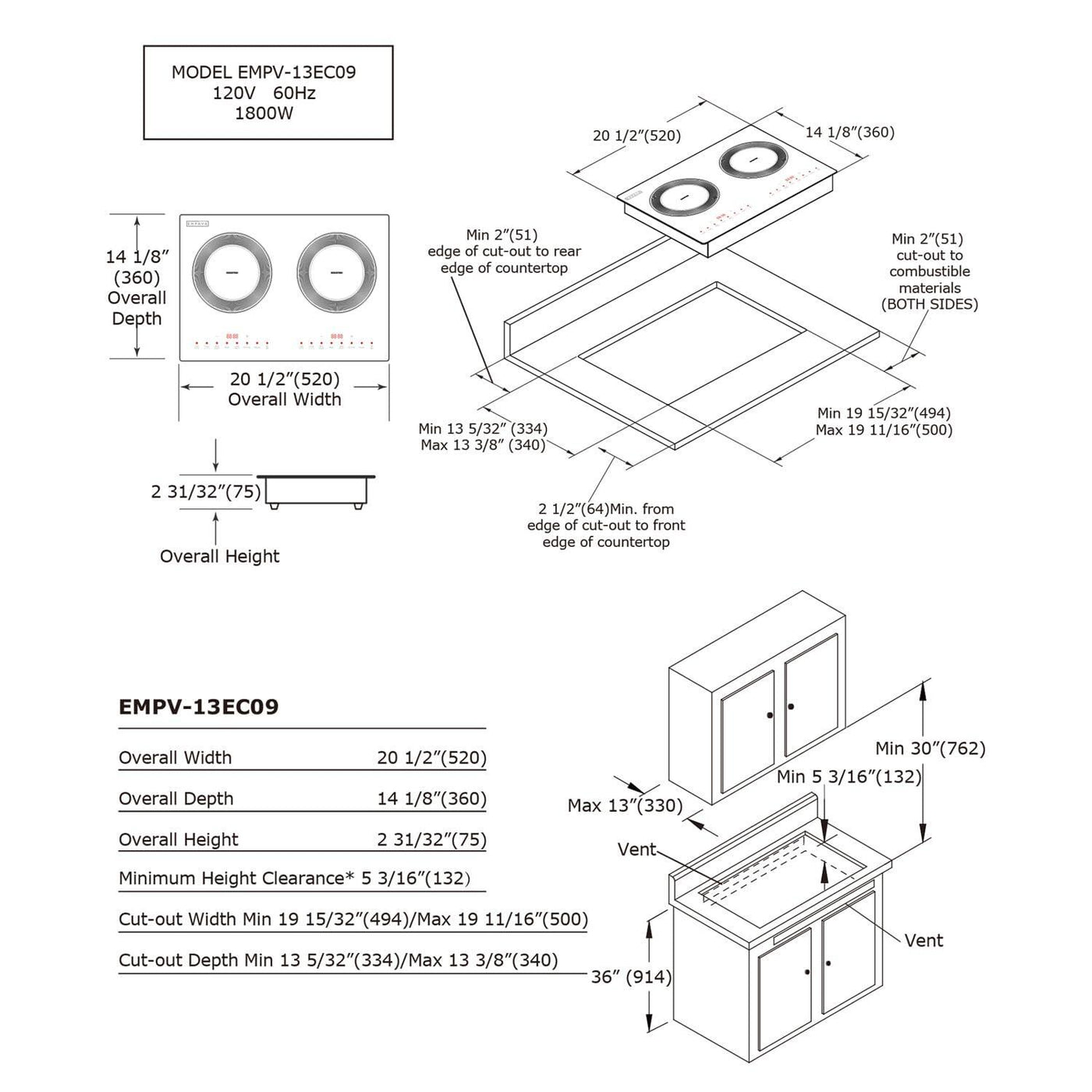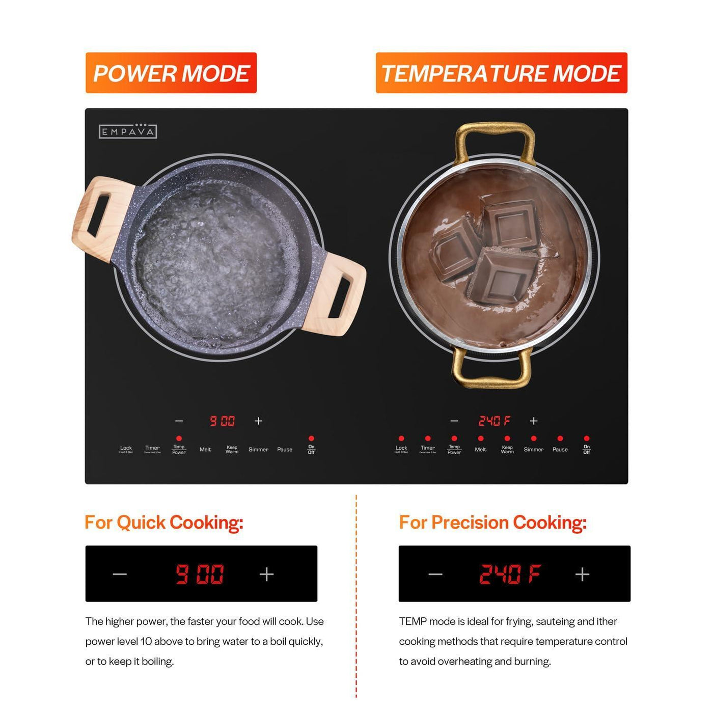 - Ultimate Cooking Flexibility: Empava's 2-burner induction cooktop offers precise temperature control from 120°F to 460°F, accommodating a range of cooking techniques. Whether you're simmering, melting, or keeping food warm, adjust to the perfect heat with ease .