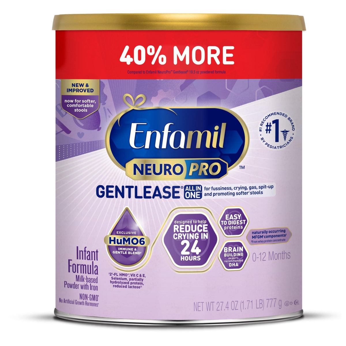 Enfamil NeuroPro Gentlease Baby Formula, Brain Building DHA, HuMO6 Immune Blend, Designed to Reduce Fussiness, Crying, Gas & Spit-up in 24 Hrs, Prebiotics to Promote Softer Stools, Baby Milk, 27.4 Oz