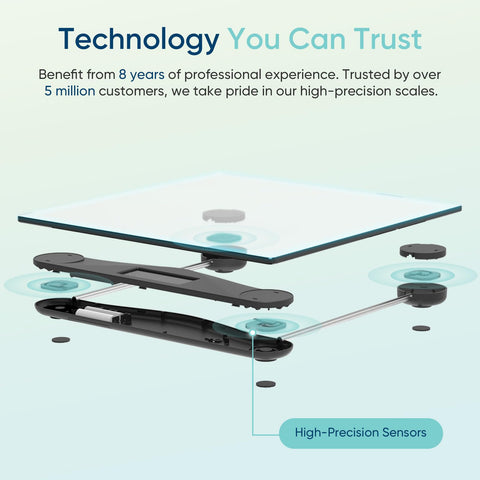 Details: RELIABLE READINGS in an instantβstep on the large platform and receive accurate measurements in pounds or kilograms. Specifications: 1. Weigh up to 400lb / 180kg. 2. PRECISION BUILT with 4 high-precision sensors, delivering results with a 0.2lb / 3oz. 3. Accuracy resolution cleanly displayed on an easy-to-read LCD screen. 4. TEMPERED STRENGTH: Built with a thick and durable 6 mm clear tempered glass platform resilient enough to provide years of fitness tracking. Note: 1.Check the scale before using. Do not use the scale if it is damaged. 2.Do not strike or bang on the scale and do not use the scale if there is a slight crack on the glass. Due to the nature of tempered glass, the glass will shatter if there is a slight crack.