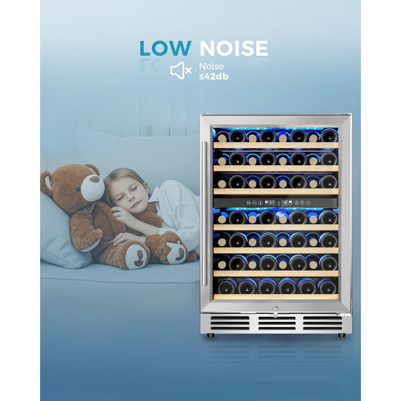 - 【High efficiency silent compressor】This wine cooler refrigerator is powered by a high-performance, ultra-quiet compressor (<38dB), delivering fast, stable cooling without disrupting your daily life. The wine chiller ensures your wines age flawlessly in a peaceful, temperature-controlled environment.