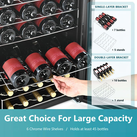 EUHOMY 45 Bottle Wine Cooler Refrigerator, Small Built-in Wine Fridge for Red, White and Champagne, 4.5 Cu.ft Mini Fridge with Adjust Temperature, Black