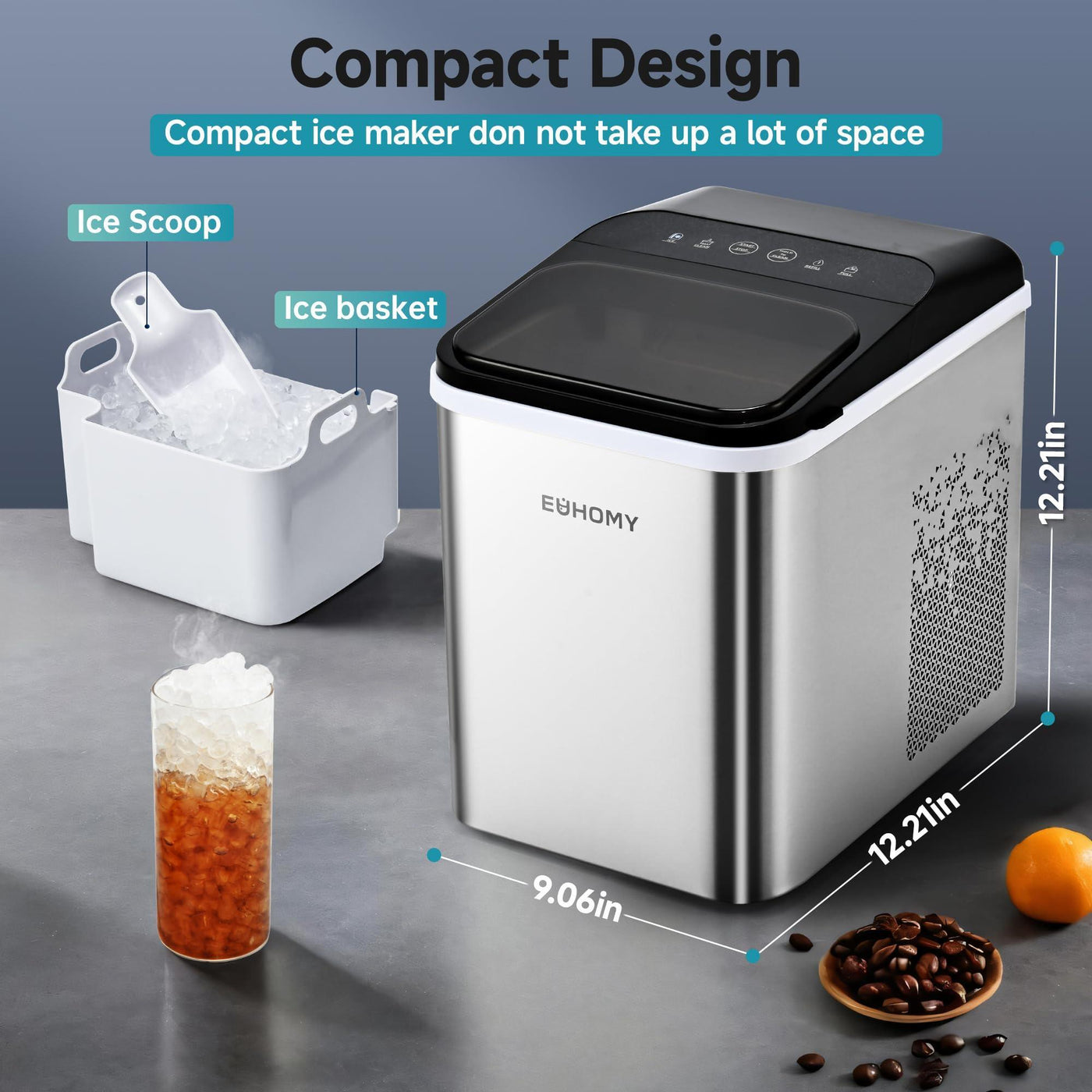 EUHOMY Nugget Countertop, Ready in 8 Mins, 35lbs/24H, Self-Cleaning, Portable Machine with Ice Scoop & Basket, Sonic with Chewable Pellet Ice for Home/Party/RV/Camping