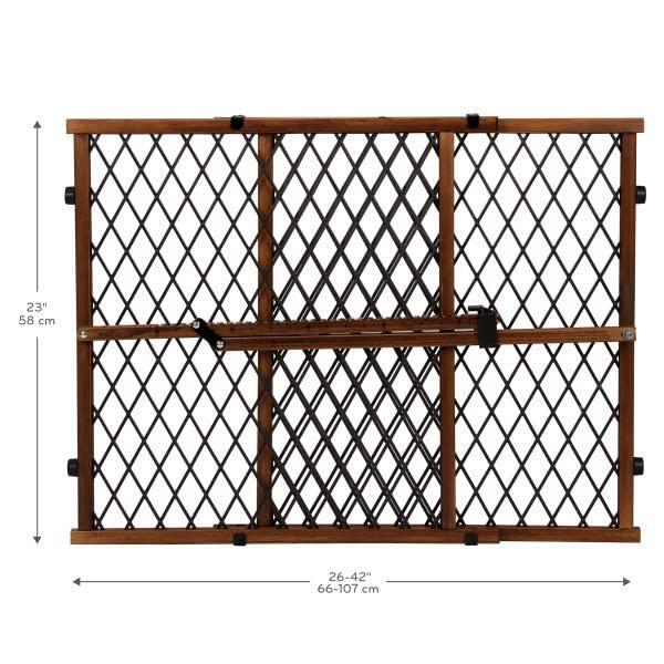 Details: The Position and Lock Farmhouse gate helps parents keep their children safe from common household dangers. Not only is this Farmhouse pressure mount gate easy to install, it also helps prevent damage to your home because no hardware is required. Also, the locking bar is marked and notched for ease installation and re-installation. Finally, the sturdy wood frame and plastic mesh are durable and secure leaving you with a feeling of assurance that your child is away from harm. To help prevent entrapment do not allow space between bottom of gate and floor.