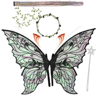 Fairy Wings for Adults and Girls,Fairy Costume Set with Floral Garland, Fairy Hair Tinsel, Wand & Elf Ears – 29 inchx21 inch Organza Butterfly Wings – Ideal for Cosplay, Party, Black Sale