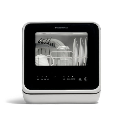- VERSATILE CLEANING: The Farberware countertop dishwasher offers five different wash cycles, including baby care, glass, and fruit wash, ensuring that all your dishes, from delicate glassware to baby bottles, are thoroughly cleaned and sanitized.