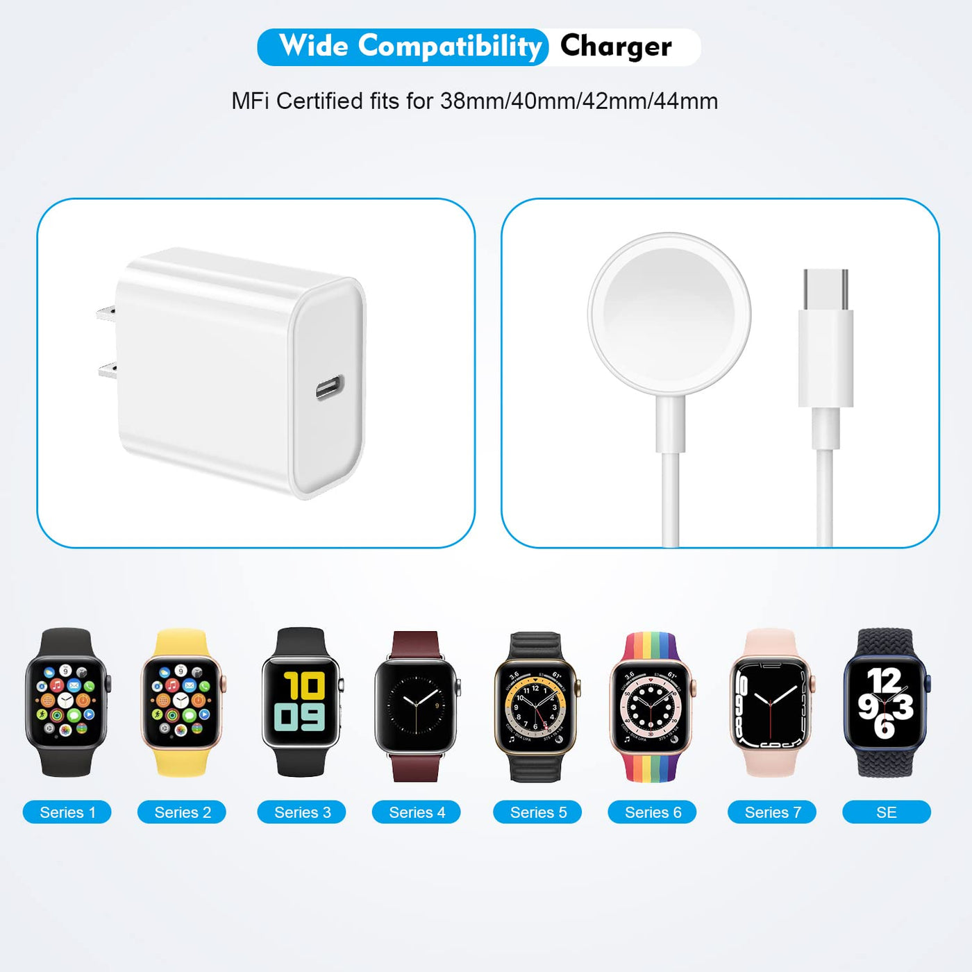 Fast Charger for Apple Watch Charger, USB C 20W iPhone Watch Charger Plug Adapter & Long 6.6FT iWatch Portable Wireless Fast Charging Cable Cord Compatible with Apple Watch Series 9/8/7/SE/6/5/4/3/2/1