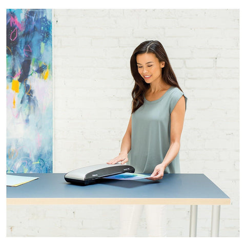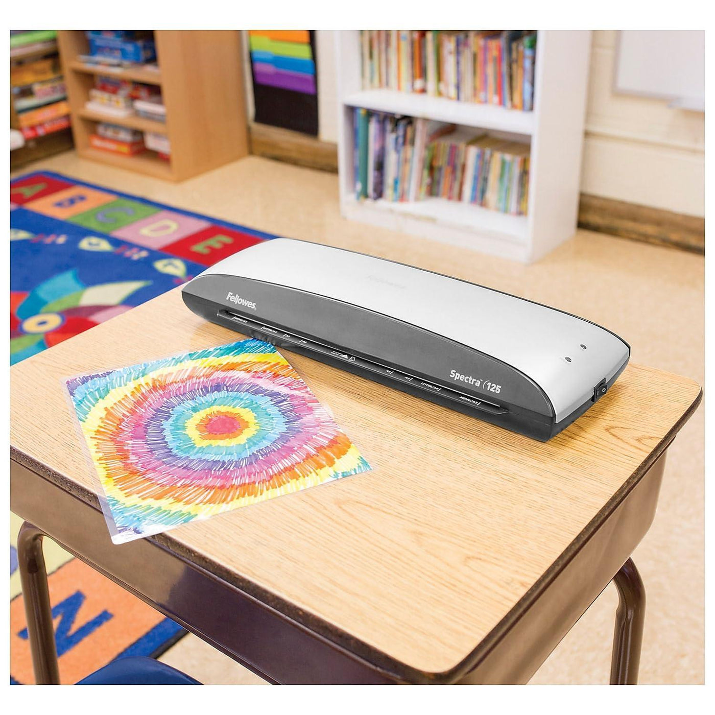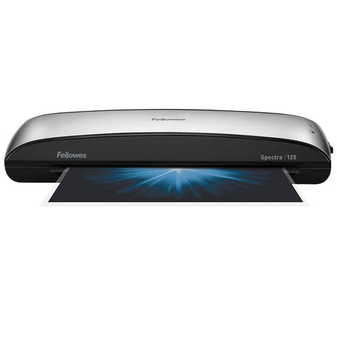 Details: Fellowes' spectra 95 laminator with pouch starter kit is a great choice for light use in your home or home office. It laminates documents and photos up to 12 in. Wide. Its auto shutoff switch prevent oveheating.