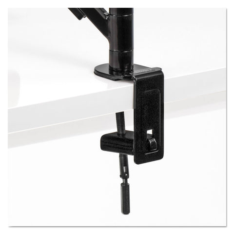 Details: Prevents neck strain by elevating monitors to a comfortable viewing height. Keeps monitors off crowded desktops, increasing work area. Easy-to-install two-piece clamp mounts monitor between desk and cubicle wall. Five-position, height-adjustable arm moves up and down in 1" increments. Allows screen to tilt, pivot, and rotate for optimal viewing. Clamps to surfaces up to 2 12" thick (2" overhang required) or mounts in a grommet hole. Mounting: Clamp;Grommet; Depth: 4 34". Part Numbers:FEL-8038201 FELLOW DESK-MOUNT ARM FOR FLAT PANEL MONITOR, 14-12 X 4-34 X 24, BLACK UPC: 043859528059