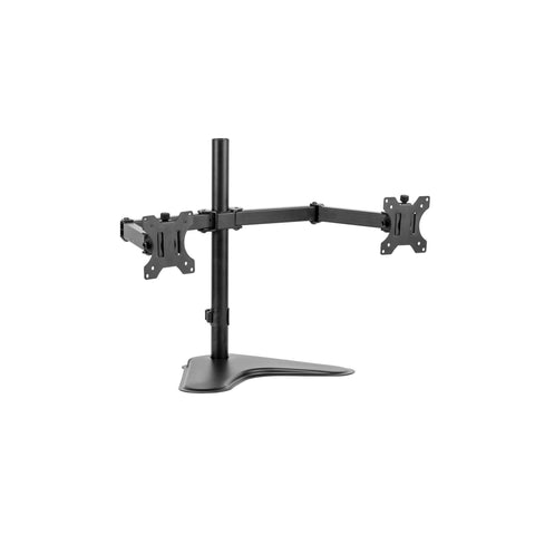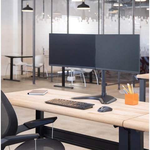 - Free-standing design allows dual monitors to be used in spaces that do not allow a clamp or grommet mount