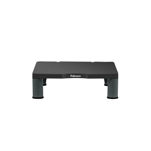 Details: Innovative stacking columns raise monitor to comfortable viewing height. Supports 21" Monitor or a maximum weight of 60 lb. Features three different height adjustments from 2" To 4". Space-saving design with high-impact plastic construction. Includes convenient cord management and non-skid rubber feet. Stand type: monitor; width: 13.38"; depth: 13.63"; Maximum height: 6".