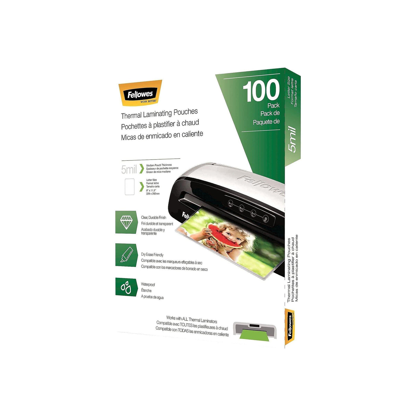Details: Fellowes laminating pouches are designed with quality photo safe materials providing excellent clarity and durability to preserve and protect important documents. These pouches are dry erase friendly and compatible with all thermal laminator brands.